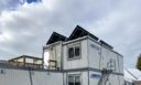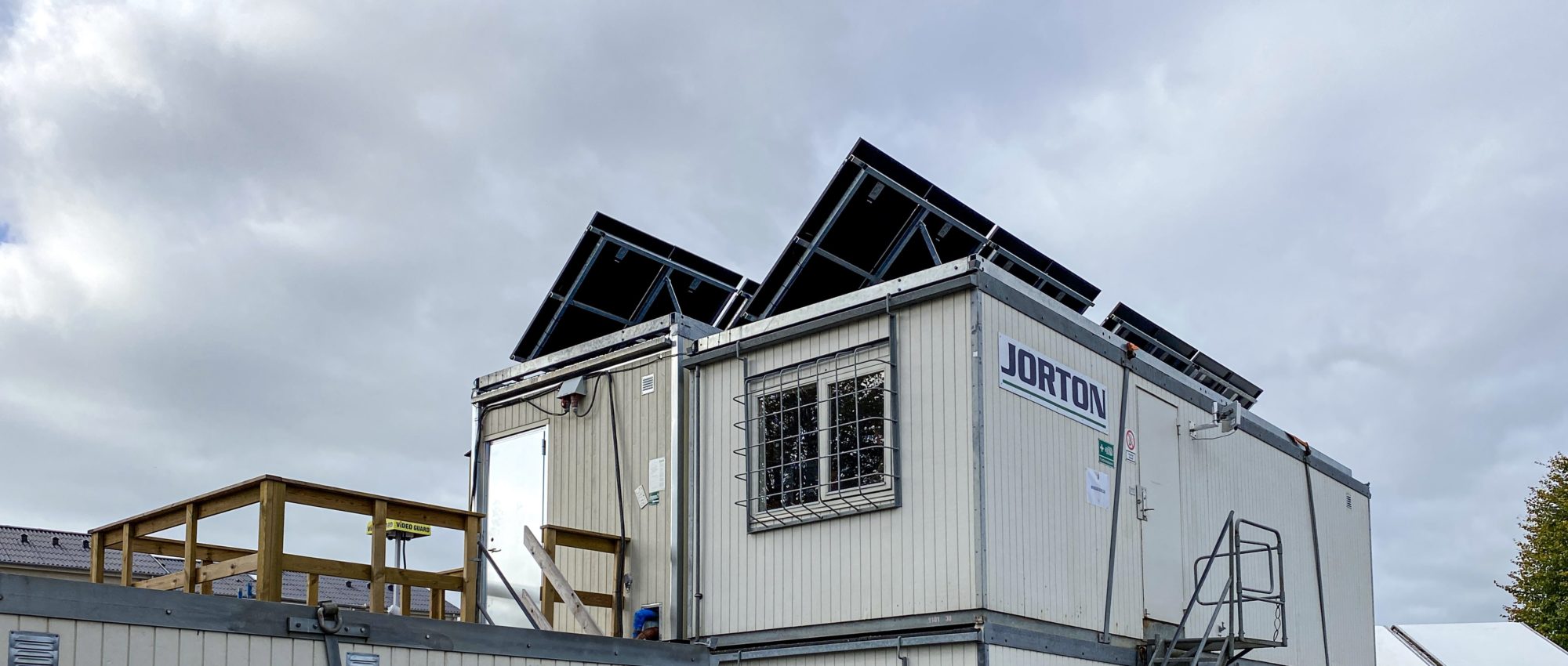 Nogle af skurvognene har nemlig fået påmonteret solceller. Det har vi søsat for at se på hvilke muligheder, der er for at skabe en grønnere byggeplads, da netop byggepladserne sluger meget energi, hele året rundt. Indtil videre nyder flere skurvogne godt af energien fra solpanelerne. Fremover vil man måske også se pladsens elbiler eller el-værktøjet få gavn af solens stråler.