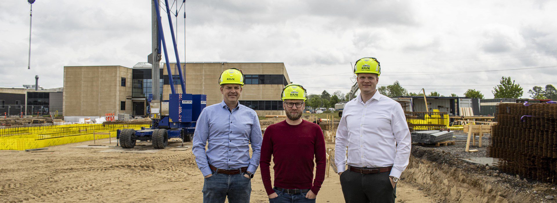 JORTON er i fuld gang med at opføre Orifarms nye kontor- og kantinebygning i Odense. Der bliver støbt, skåret, løftet og boret og ifølge projektlederne Jesper Lynge Wiingaard og Magne Armose Jørgensen fra JORTON, er man godt med og der er højt humør på pladsen: