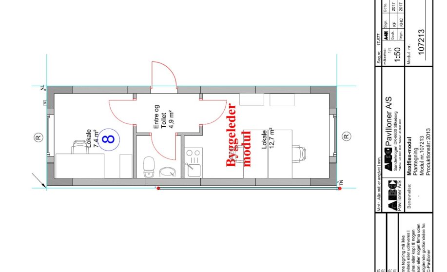 Maximodulet overholder BR15.7.3.1 stk., bilag 6 for midlertidigt byggeri, og har fire fleksible ydervægge, hvilket giver en stor indretningsfleksibilitet.