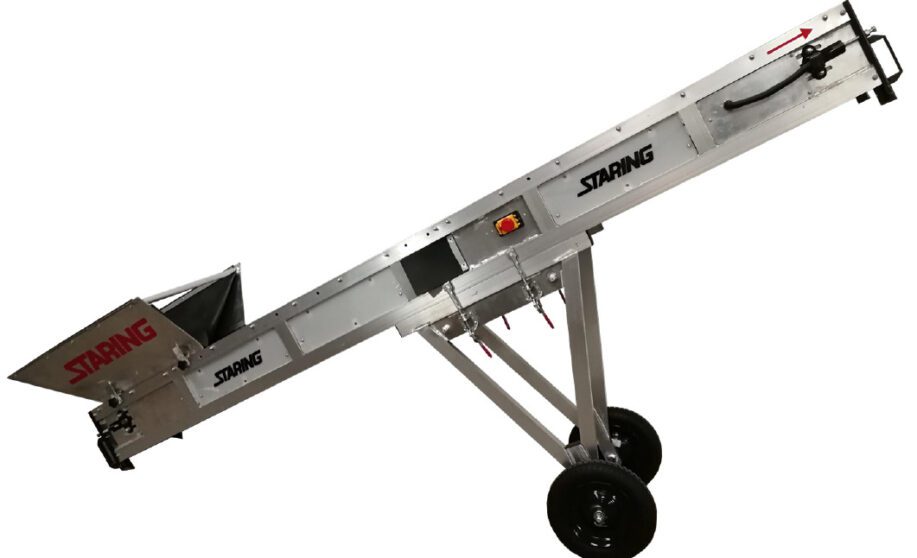 Staring transportbånd til mange opgaver. Transportbåndet leveres med transportvogn og med båndets lave egenvægt er det utroligt nemt at håndtere.