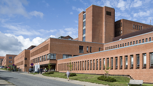 Byggeriet er opført mellem hospitalets eksisterende bygningsmasser og tilkoblet underjordisk personalegang.