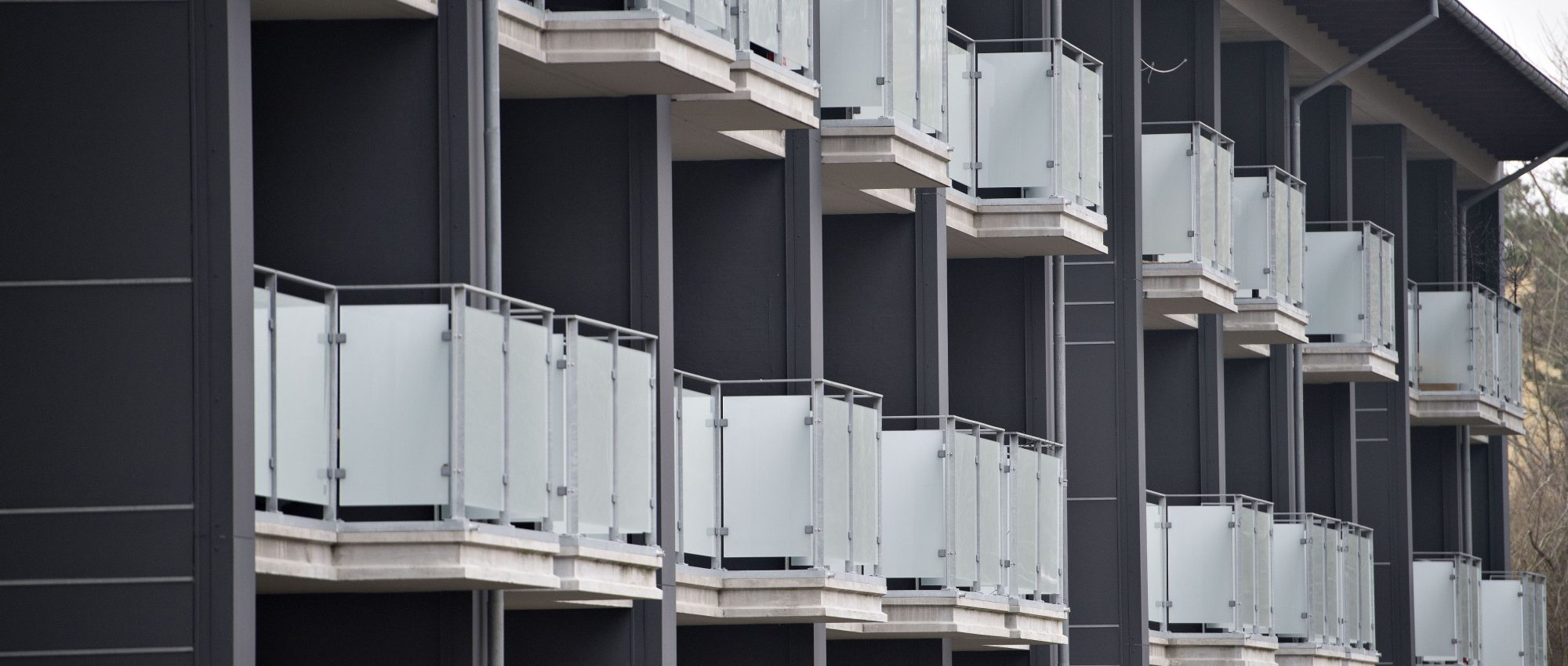 Facadematerialerne består af massive mursten i et gråt spil, der med sit farvespil danner et moderne udtryk og som spiller sammen med de eksisterende blokke i Skanseparken. Mellem og ved vinduerne er der tilbagetrukne sten i en ensfarvet lys-grå farve, som skaber kontrast til de lys-grå facadeplader og det sorte tagpap. Sammen med facadepladen træder vinduerne frem som en stilfuld udsmykning med deres karme i sortgrå.